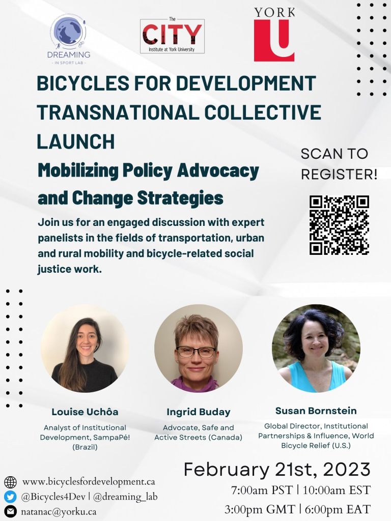 Based on the feedback from key stakeholders involved in our previous two workshops (held virtually in January and June 2022), we will be hosting our third workshop in February 2023. The workshop will feature three panelists who will engage in discussion about policy development, change and advocacy strategies through bicycle-related social justice work. We seek to build on the expertise of our panelists, all of whom have experience in producing, shaping and advocating for policy change in relation to one or more of the following areas: participatory planning, informal urban transport, urban and rural mobility and/or accessibility in urban design.